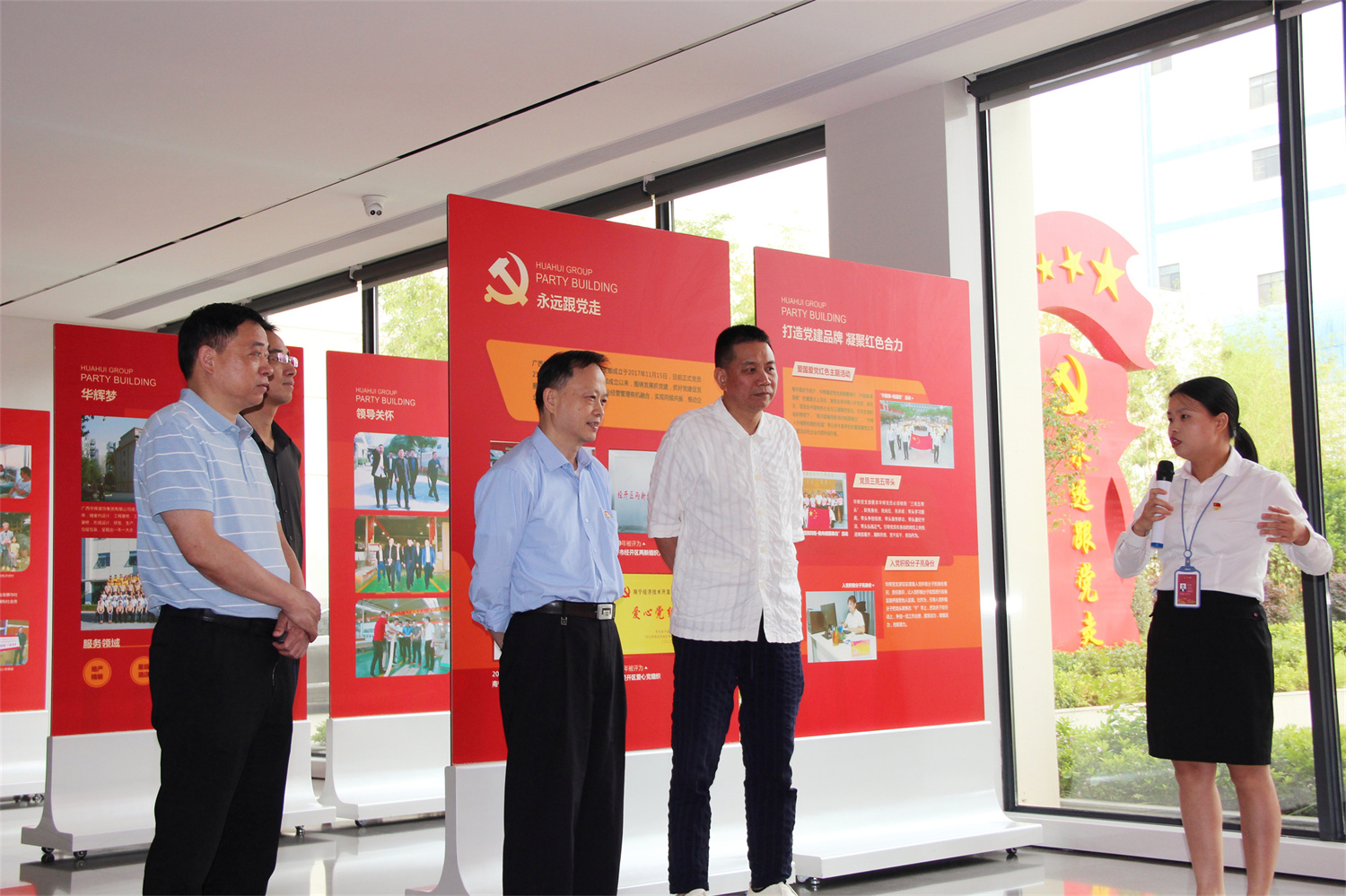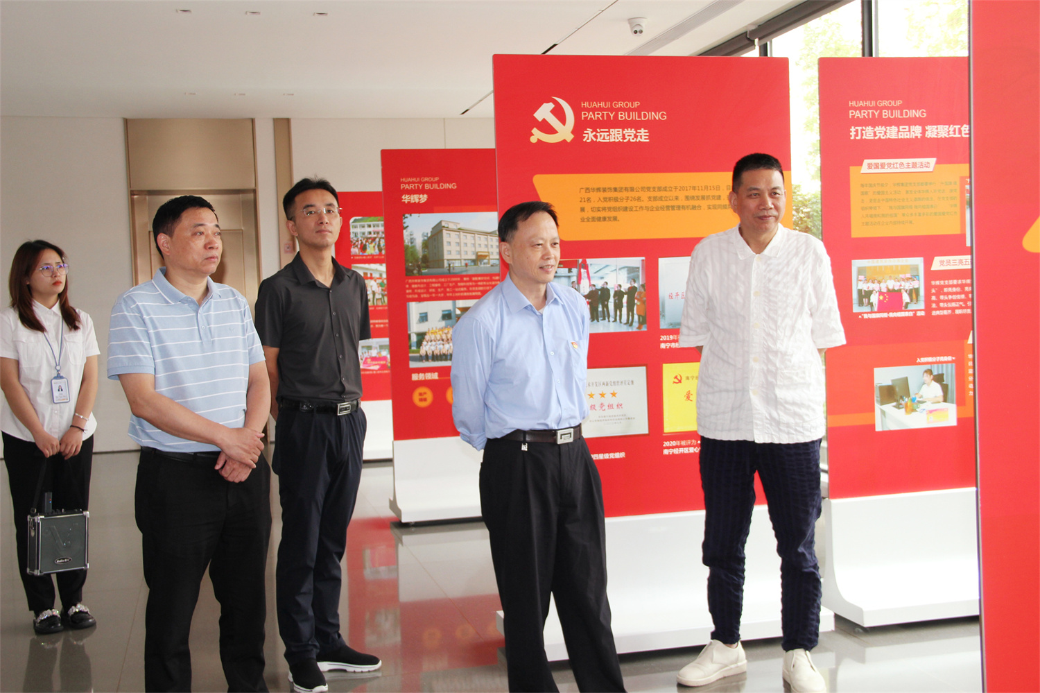 ▲李開剛(右二)參觀華輝黨建陣地