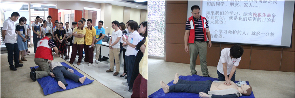 應(yīng)急救護(hù)培訓(xùn)現(xiàn)場(chǎng):來自紅十字會(huì)的培訓(xùn)老師用通俗易懂的語言為大家講解了心肺復(fù)蘇、人工呼吸等常見應(yīng)急、意外傷害的救護(hù)原理及技術(shù)手段,并結(jié)合實(shí)踐操作,讓大家掌握基本急救、自救、呼救的技能知識(shí)和關(guān)鍵性的救助實(shí)踐操作,提高面對(duì)意外事故的應(yīng)急能力。