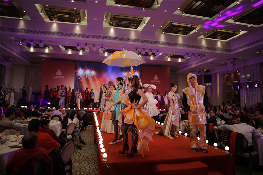 《萬(wàn)千星輝》時(shí)尚T臺(tái)秀:來(lái)自華輝各崗位的家人化身模豆,帶領(lǐng)大家穿越古今,最后壓軸的是華輝設(shè)計(jì)師自創(chuàng)的10套服裝,均是量體裁衣,用裝飾材料木皮、墻紙、電線等制作而成,全面貫徹了華輝綠色節(jié)能的裝配式工廠化裝修理念。