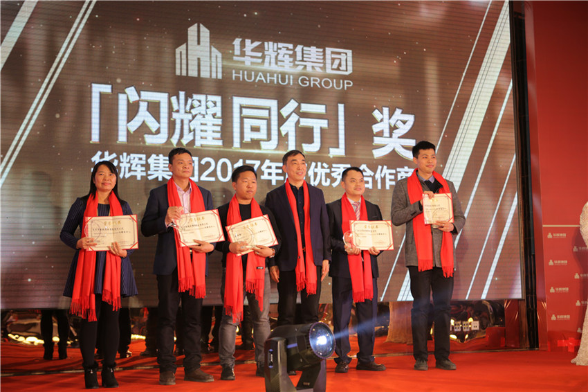 華輝集團(tuán)2017年度優(yōu)秀合作商“閃耀同行”獎(jiǎng):2017年,華輝業(yè)績(jī)?cè)賱?chuàng)新高。華輝的每一次成績(jī),都是因?yàn)橛袕V大客戶的認(rèn)可,有合作商的鼎力支持。感謝你們一路相伴,讓這條成長(zhǎng)之路更加光輝閃耀。
