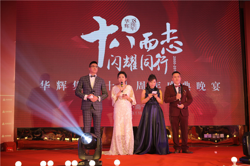 2018年1月18日,華輝集團(tuán)“十八而志 閃耀同行”十八周年盛典在南寧萬(wàn)象城迎囍皇宮隆重舉辦,近五百名華輝家人及嘉賓歡聚一堂,共同慶祝華輝18年華誕。