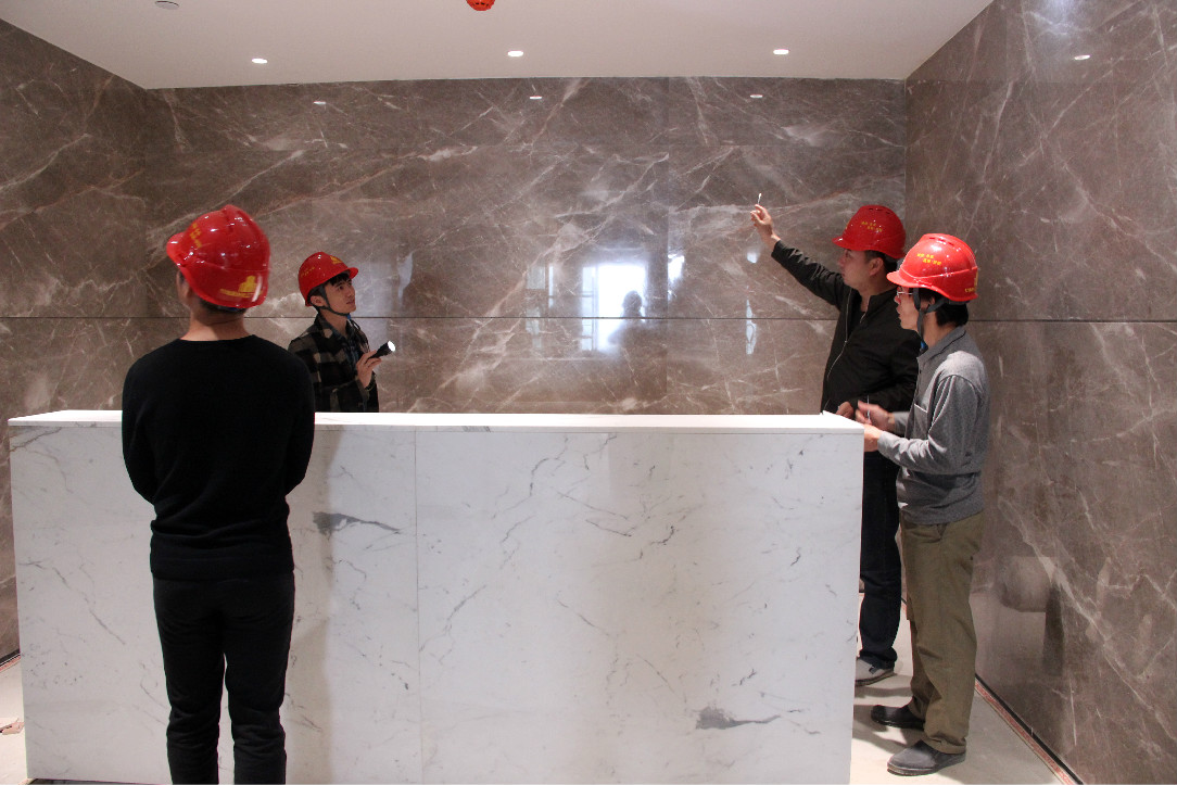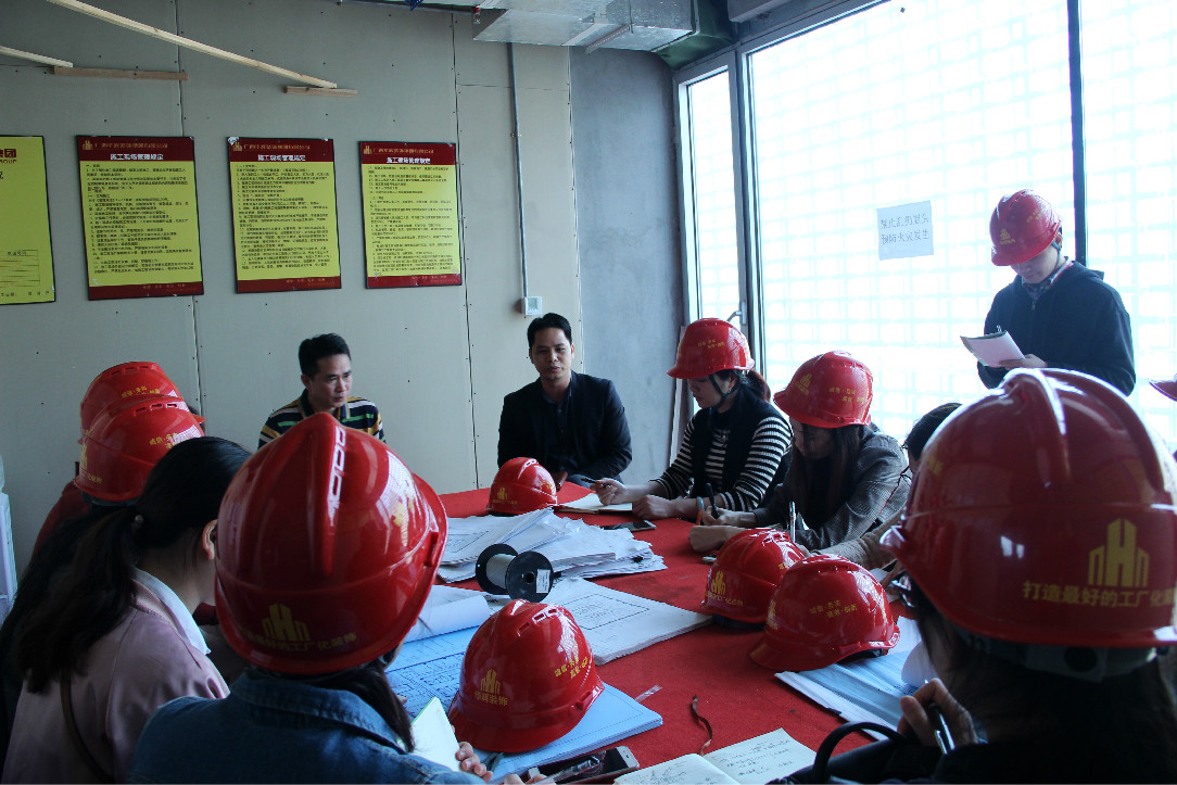 由華輝裝飾集團(tuán)承接的廣西洋浦南華糖業(yè)集團(tuán)辦公樓層室內(nèi)裝修工程已經(jīng)接近尾聲,為不斷完善和改進(jìn)質(zhì)量管理工作,提高質(zhì)量管理水平,打造精品工程,2018年3月26日,集團(tuán)組織工程中心質(zhì)安部、工程管理部等多個(gè)部門聯(lián)合成立自檢自查小組,對(duì)該項(xiàng)目的質(zhì)量、工藝進(jìn)行全方位檢查。