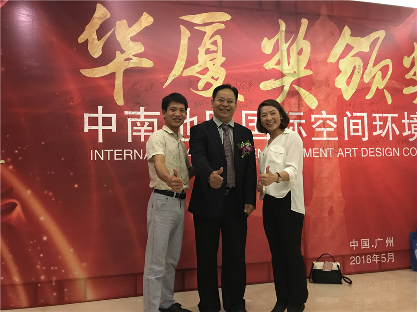 ▲華輝獲獎(jiǎng)設(shè)計(jì)師與廣州市建筑裝飾協(xié)會(huì)會(huì)長(zhǎng)、本次大賽組委會(huì)主任倪安葵(中)合影