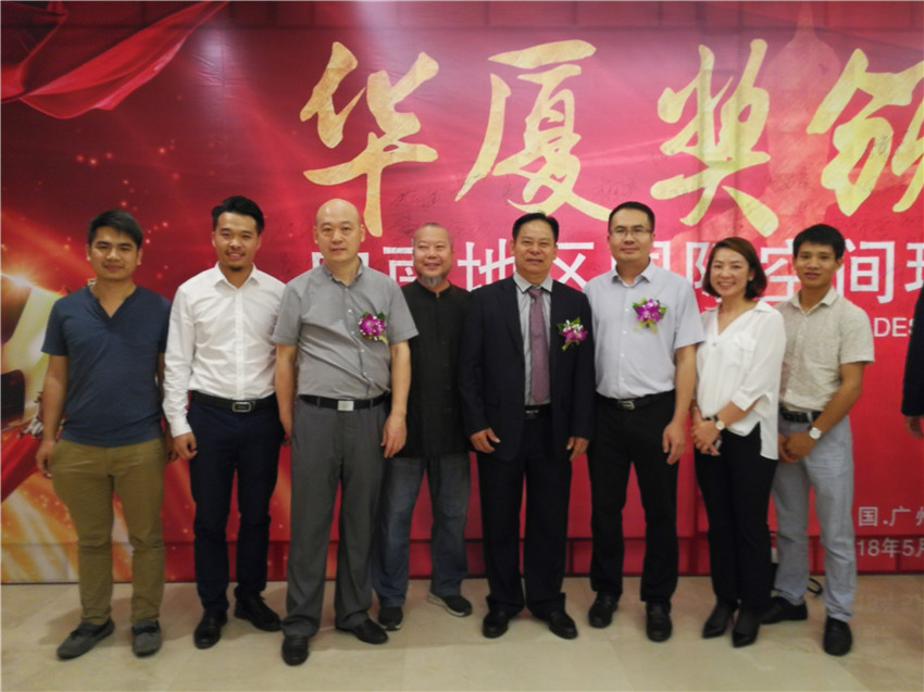 ▲華輝獲獎(jiǎng)設(shè)計(jì)師與廣西建筑裝飾協(xié)會(huì)龐耀國(guó)會(huì)長(zhǎng)(左二)合影