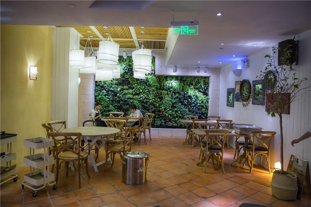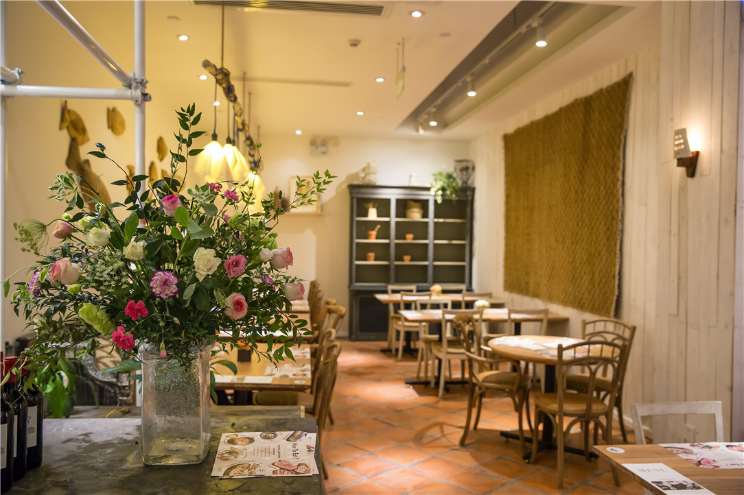 用餐區(qū)的裝修保持了烏瑪一貫簡(jiǎn)潔優(yōu)雅的調(diào)性,白色墻面和木質(zhì)桌椅,以及墻上別致的小擺件,在柔和的黃色燈光下,有種令人放松的親切感。隨意挑個(gè)心儀的位子坐下,點(diǎn)上一份西餐,沒(méi)有外部世界的叨擾,這里足以讓你填飽肚子,慰藉心靈,達(dá)到身心的雙重統(tǒng)一。