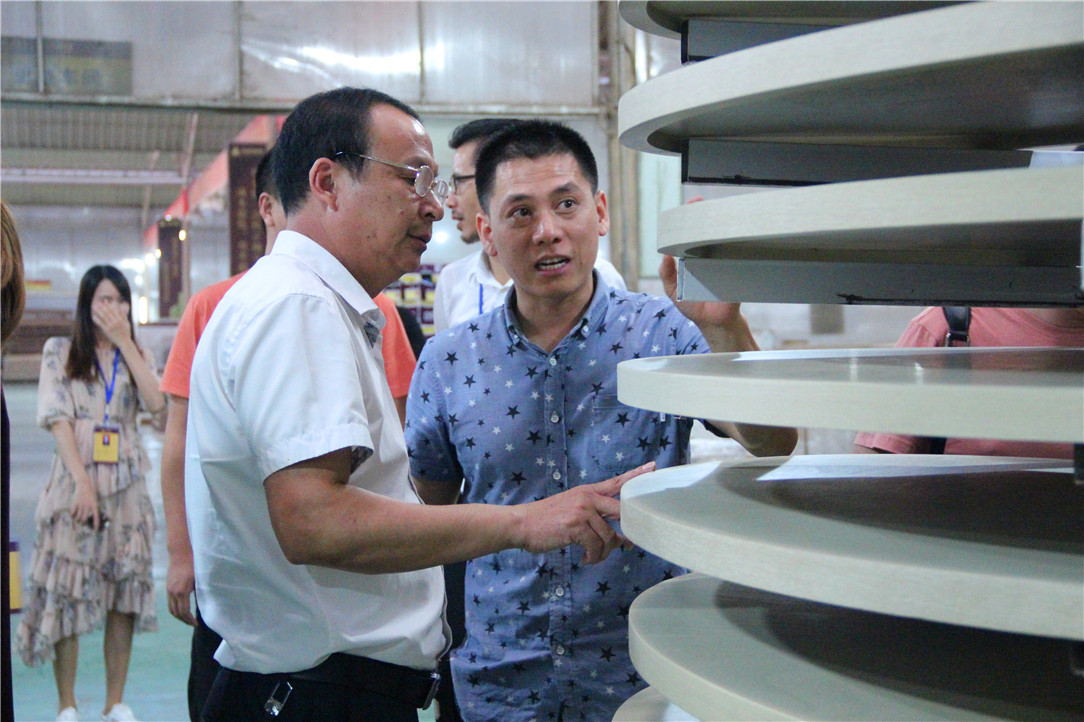 ▲袁繼秋董事長向華輝工藝主任時世義了解生產(chǎn)工藝