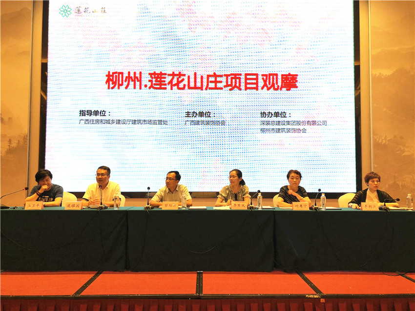 8月17日下午,由廣西住房和城鄉(xiāng)建設(shè)廳建筑市場監(jiān)管處指導(dǎo),廣西建筑裝飾協(xié)會主辦,深裝總建設(shè)集團股份有限公司、柳州市建筑裝飾協(xié)會共同協(xié)辦的蓮花山莊裝修工程現(xiàn)場觀摩活動順利舉辦。
