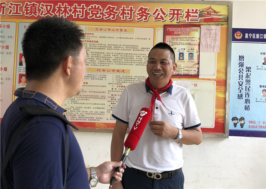 ▲楊景忠董事長在捐贈現(xiàn)場接受南寧電視臺采訪