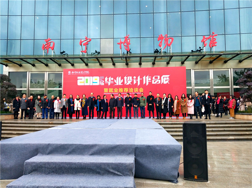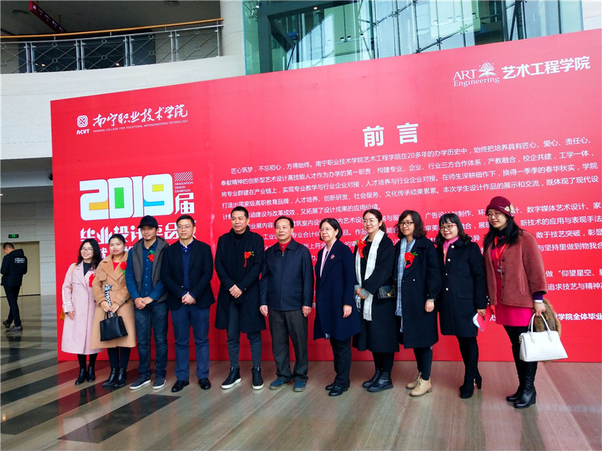 ▲南職院黨委書記黃明瑞(左六)、藝術(shù)工程學(xué)院院長黎衛(wèi)(右五)、藝術(shù)工程學(xué)院黨委書記張治中(左四)