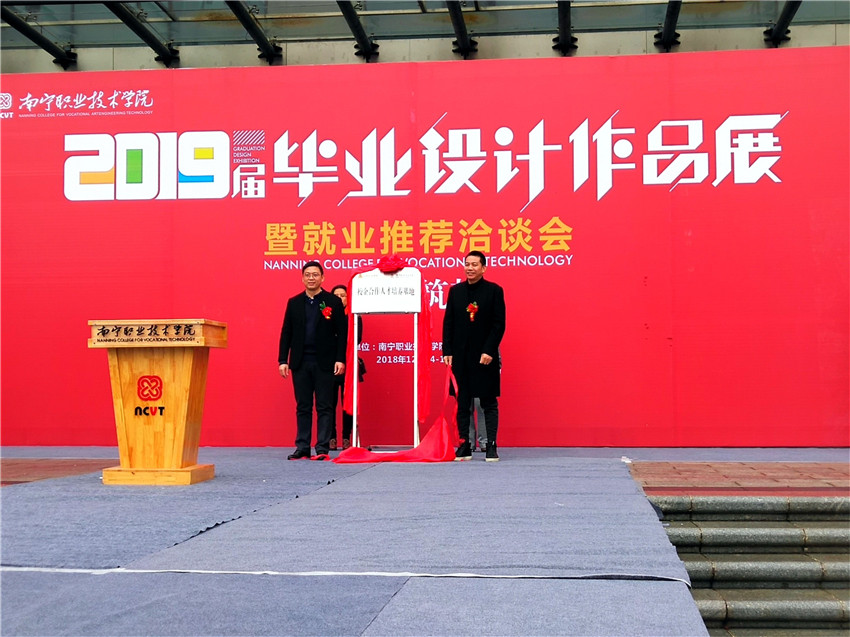 開幕式舉行了南職院藝術(shù)工程學(xué)院與華輝裝飾集團(tuán)“校企合作人才培養(yǎng)基地”揭牌儀式,南寧職業(yè)技術(shù)學(xué)院藝術(shù)工程學(xué)院黨委書記張治中、楊景忠董事長共同揭開了牌匾。