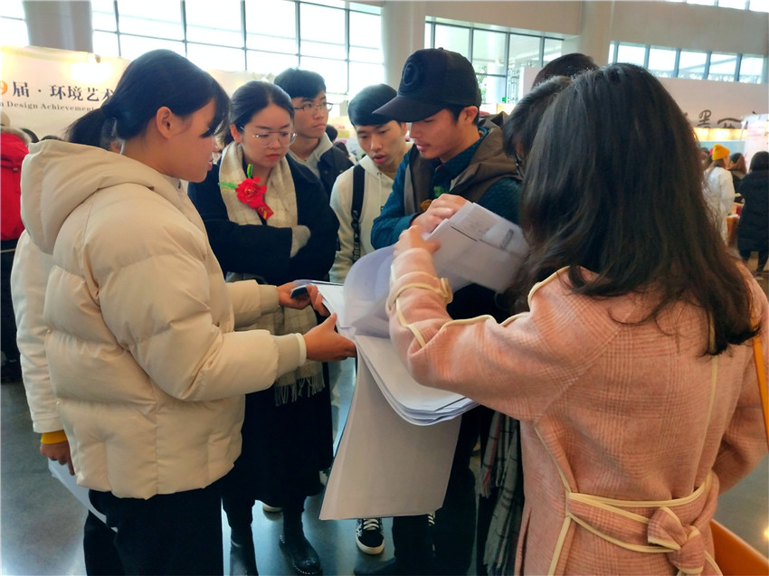畢業(yè)作品展開展的同時,就業(yè)推薦洽談會也如火如荼地舉行,華輝裝飾集團(tuán)人資部也參與了現(xiàn)場招聘。