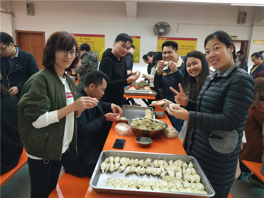 中午,集團(tuán)飯?zhí)没須g樂溫馨的包餃子現(xiàn)場,大家有說有笑,你追我趕地包餃子、吃餃子、吃湯圓,享受歡聚的幸福!