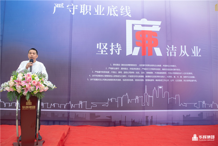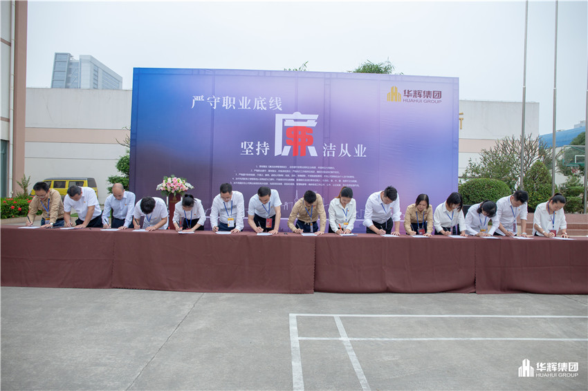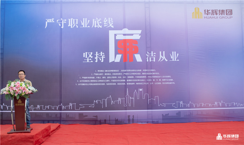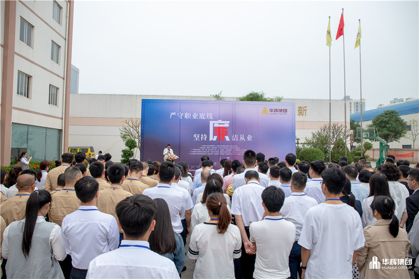 2019年4月13日,華輝集團(tuán)開展“嚴(yán)守職業(yè)底線,堅持廉潔從業(yè)”的宣誓儀式,集團(tuán)員工及材料、勞務(wù)合作商參加了活動。