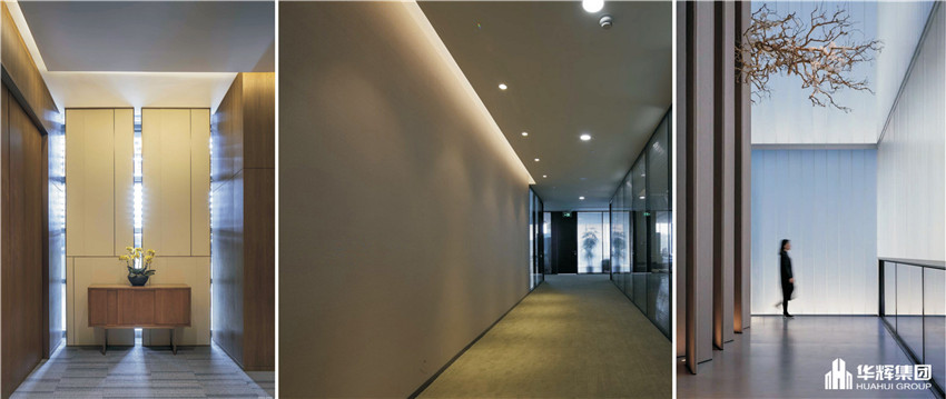 在自然的回歸之旅中,在空間的重新架構(gòu)中,將一塊塊老舊的水泥漆構(gòu)成空間的底部,象征著往昔歲月的沉積,而通透的木格、玻璃,則仿佛一塊美玉,影射著新生?!咏?jīng)理辦公室效果圖