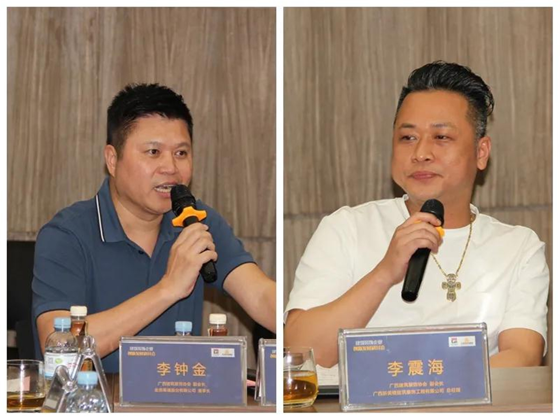 ▲(左)副會長、廣西建林裝飾工程有限責(zé)任公司董事長 黃閃,(右)副會長、廣西英特裝飾工程有限責(zé)任公司總經(jīng)理 李軍