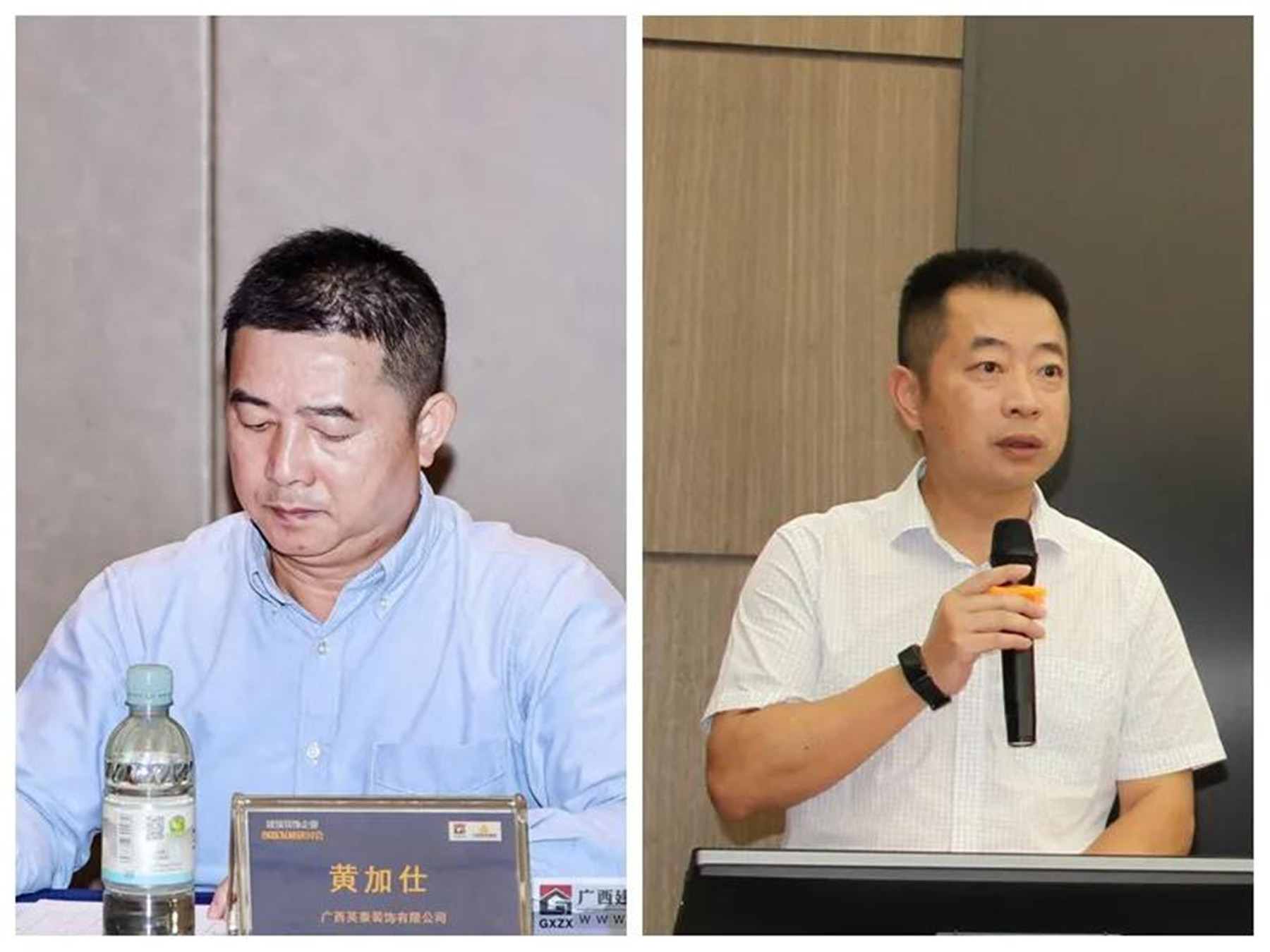 ▲(左)監(jiān)事長、廣西英泰裝飾有限公司總經(jīng)理 黃加仕,(右)廣西建筑裝飾協(xié)會副秘書長 譚謙