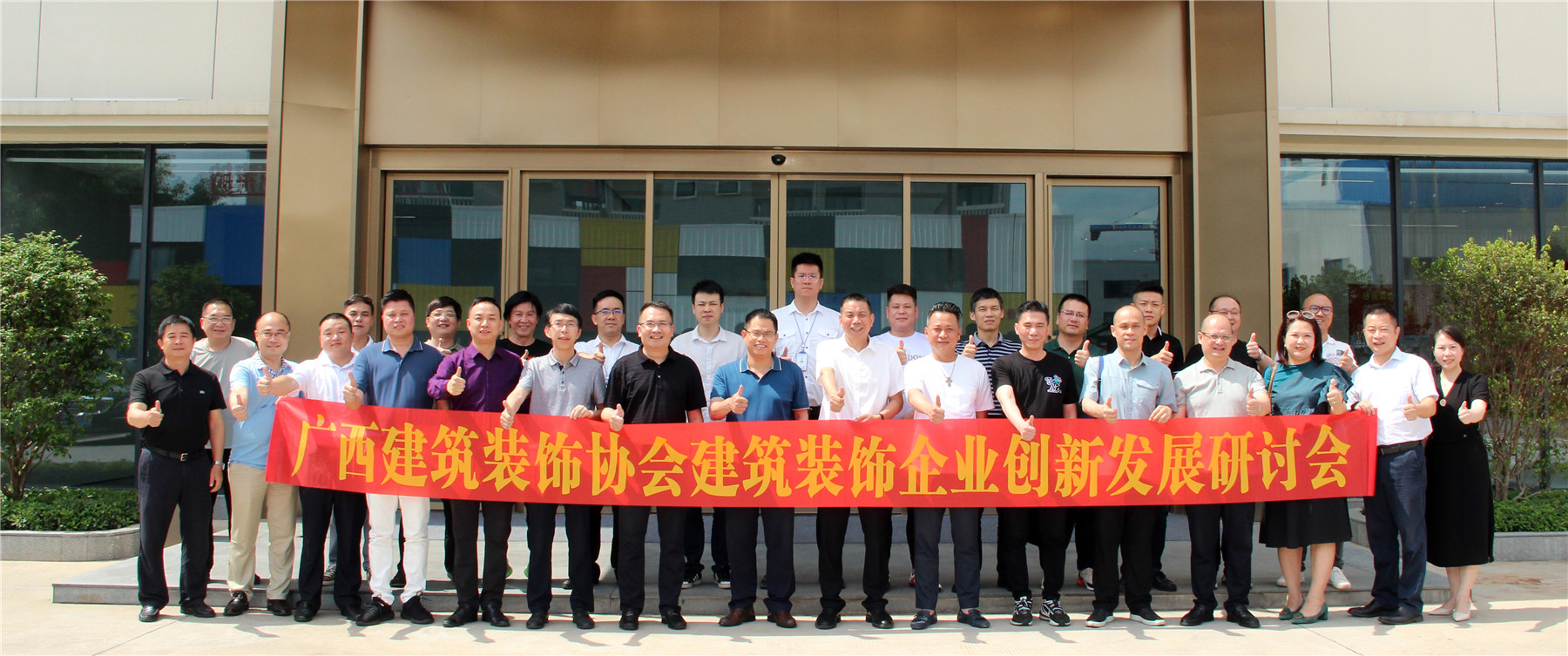 會后,參會嘉賓在楊景忠董事長的帶領(lǐng)下,參觀了廣西華輝裝飾集團(tuán)有限公司新改造升級的辦公場地以及裝配式工廠化生產(chǎn)基地。