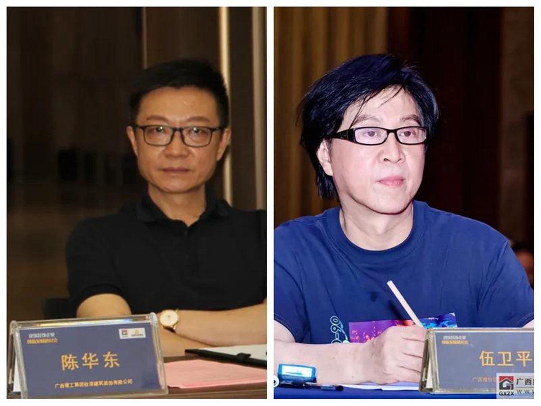 ▲(左)副會長、廣西建工集團(tuán)桂港建筑裝飾有限公司董事長 陳華東,(右)副會長、廣西雅仕達(dá)建設(shè)工程有限公司總經(jīng)理 伍衛(wèi)平