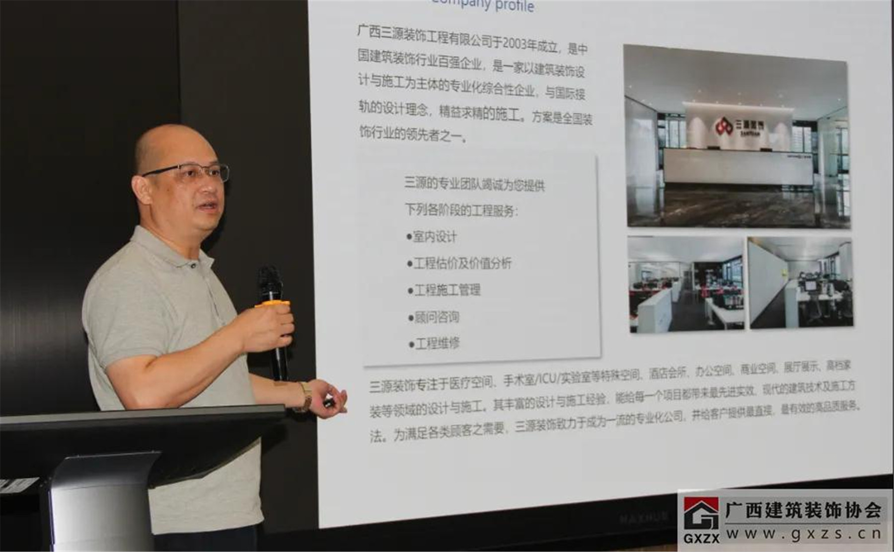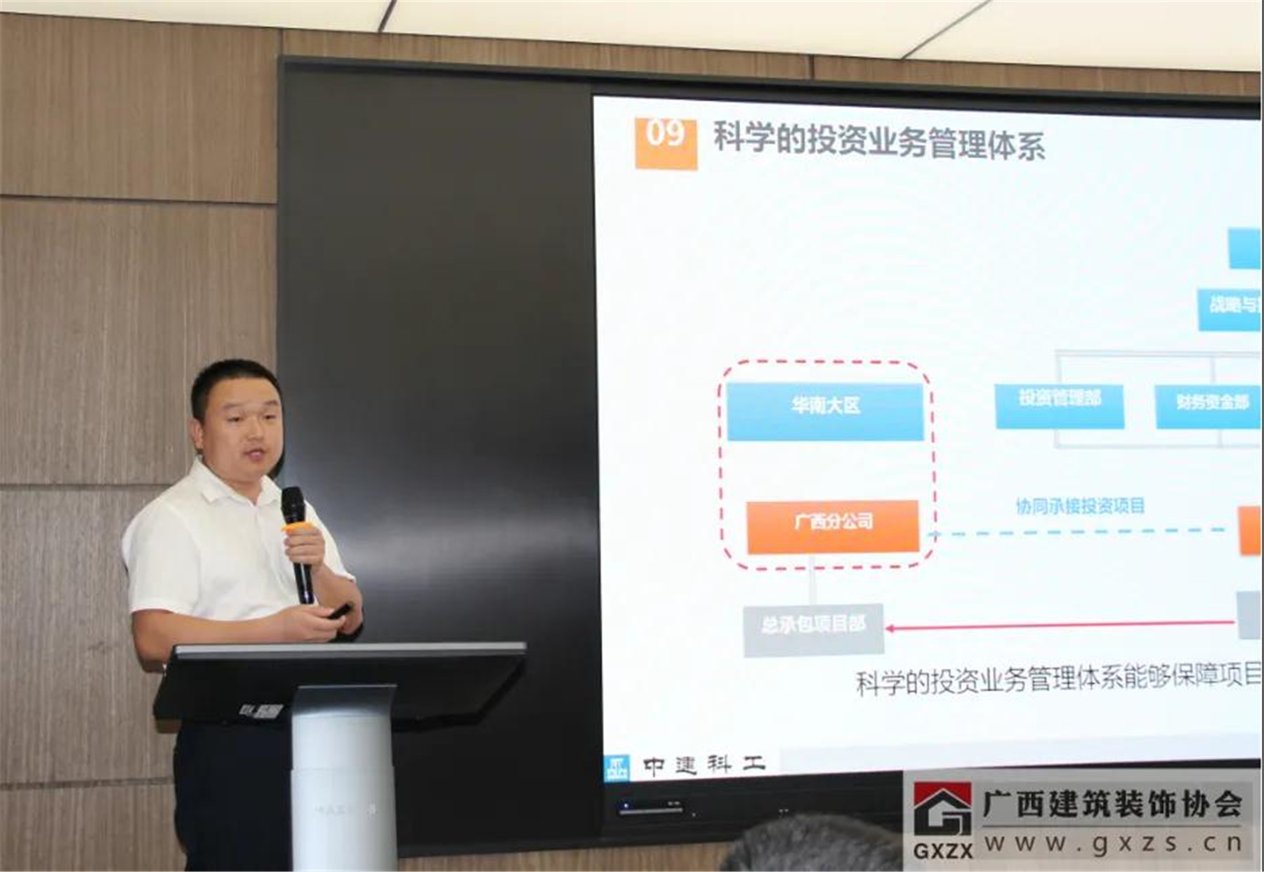 廣西三源裝飾工程有限公司副總經(jīng)理陳遠(yuǎn)立為與會嘉賓做了“EPC項(xiàng)目經(jīng)驗(yàn)分享”。