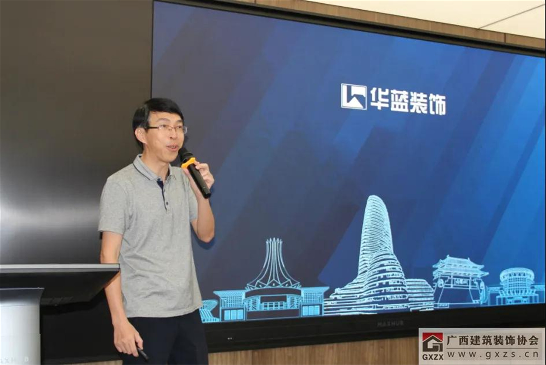 協(xié)會副會長、廣西華藍(lán)建筑裝飾工程有限公司董事長朱建宇進(jìn)行了“以設(shè)計(jì)引領(lǐng)建筑裝飾企業(yè)創(chuàng)新發(fā)展”的分享。
