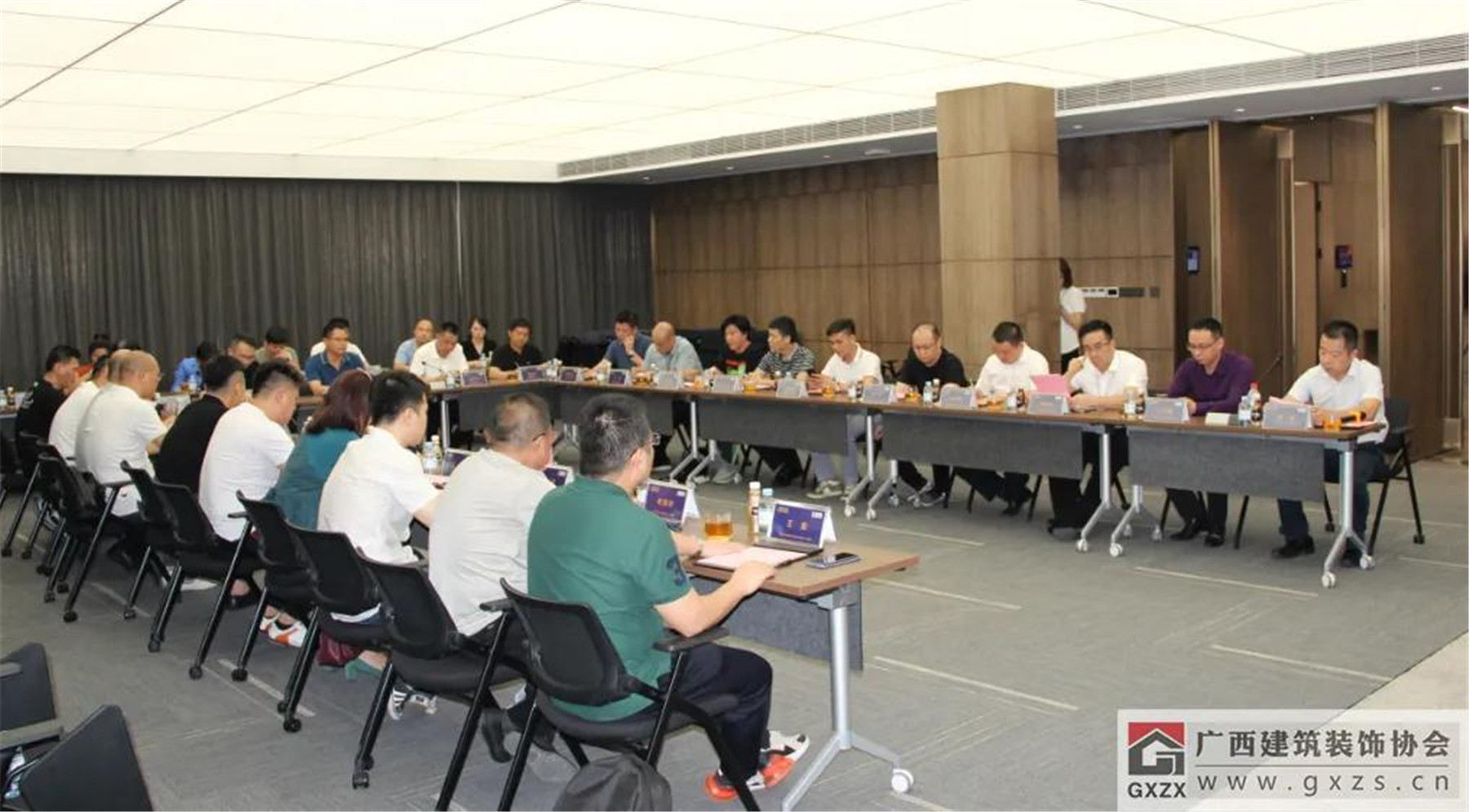 廣西華輝裝飾集團(tuán)有限公司副總裁覃祖榮、廣西華藍(lán)建筑裝飾工程有限公司副總經(jīng)理盧廬、廣西華輝裝飾集團(tuán)有限公司董事長助理兼市場總監(jiān)楊彬、廣西華輝裝飾集團(tuán)有限公司董事長助理?xiàng)盍?、廣西建筑裝飾協(xié)會辦公室主任黃榆、組織聯(lián)絡(luò)部主任陳雪玲等參加了會議。