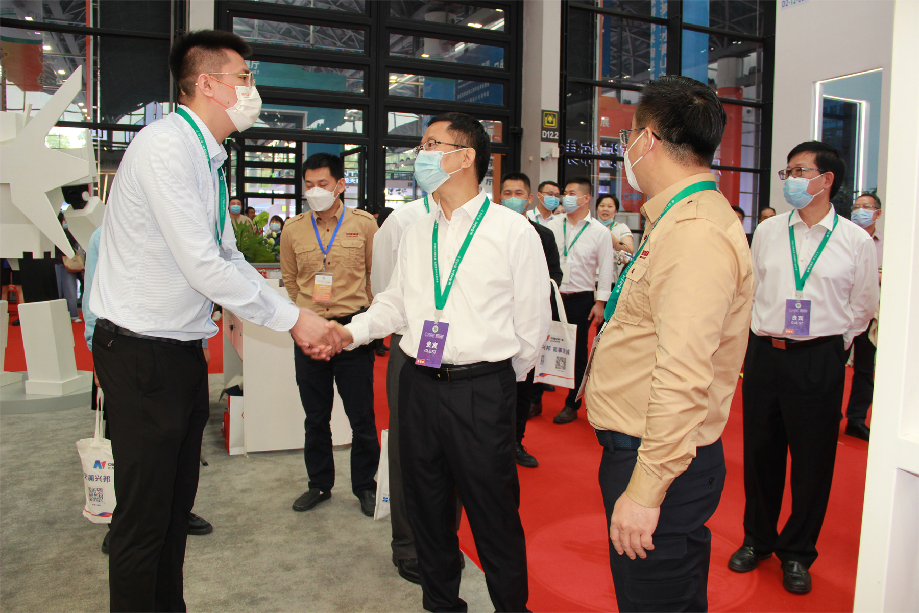 2022年11月26日,2022中國—東盟建筑業(yè)暨高品質(zhì)人居環(huán)境博覽會第二天,自治區(qū)住房城鄉(xiāng)建設(shè)廳副廳長潘國雄蒞臨華輝展廳指導(dǎo)。