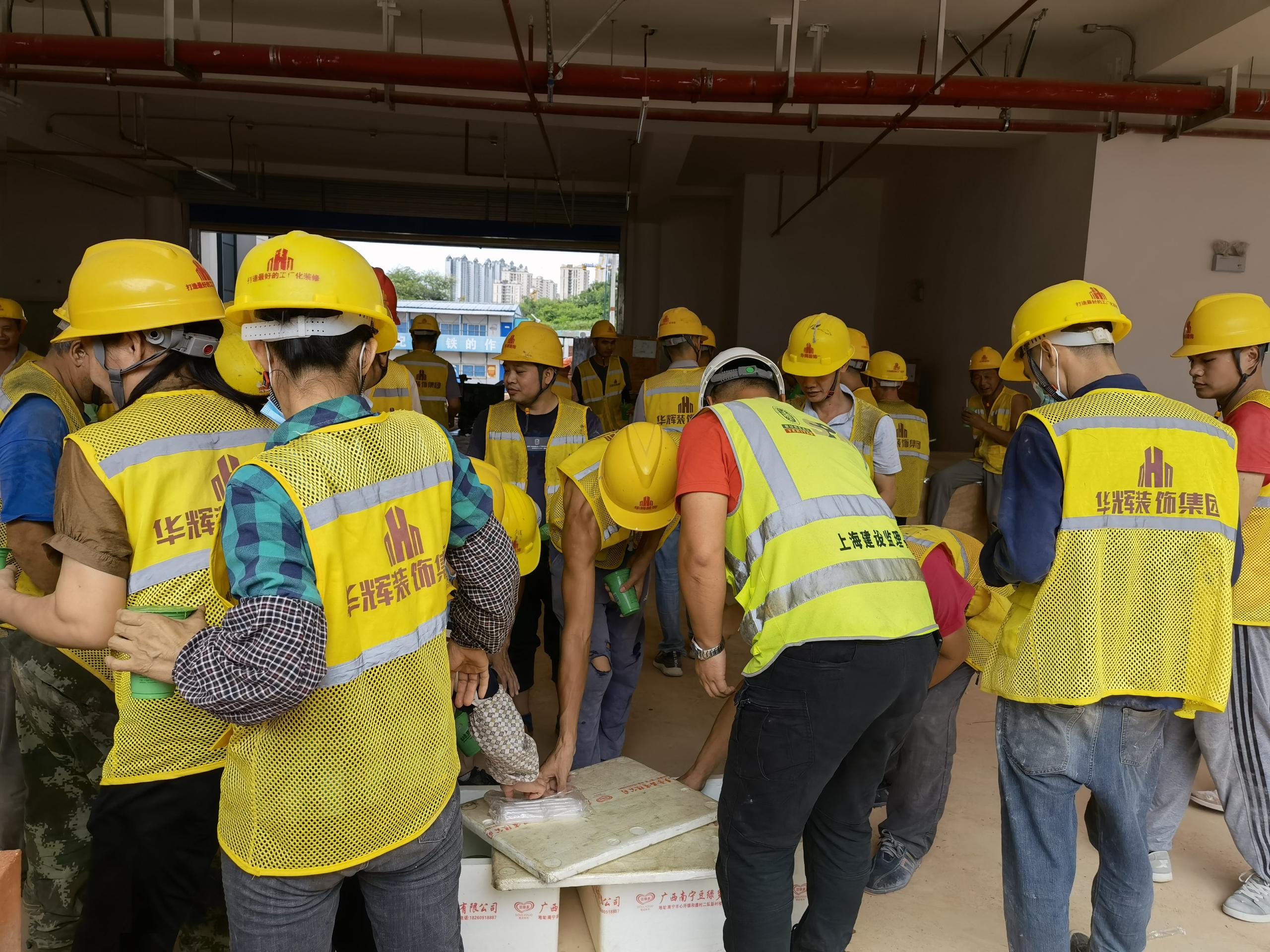 一份降暑涼茶、一份工傷預(yù)防宣傳手冊(cè)……傳遞的是廣西建筑裝飾協(xié)會(huì)對(duì)華輝一線人員的關(guān)愛。在項(xiàng)目現(xiàn)場(chǎng),協(xié)會(huì)領(lǐng)導(dǎo)深入了解企業(yè)生產(chǎn)經(jīng)營(yíng)、項(xiàng)目施工進(jìn)度、安全生產(chǎn)等情況,將安全生產(chǎn)、工傷預(yù)防宣傳冊(cè)以及防暑清涼慰問品發(fā)放到工人手中。