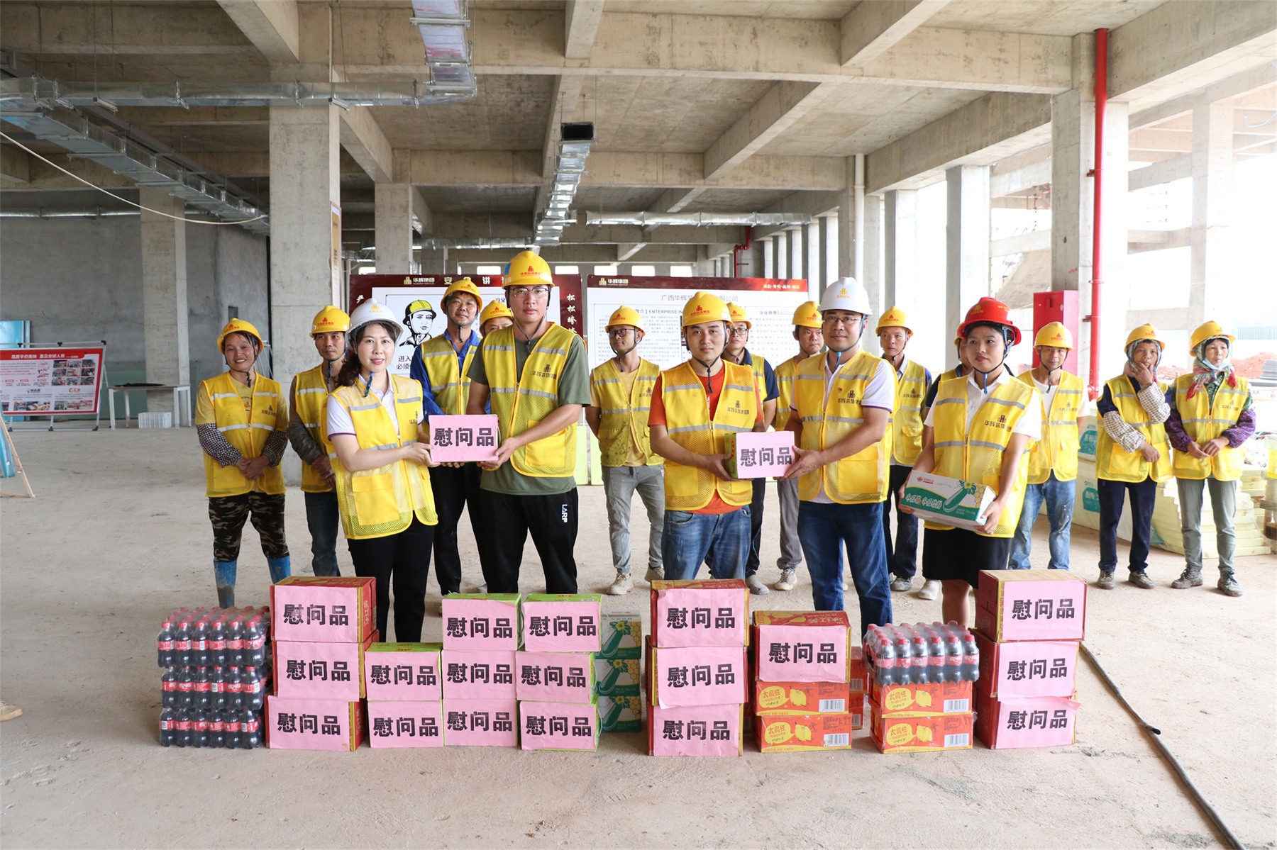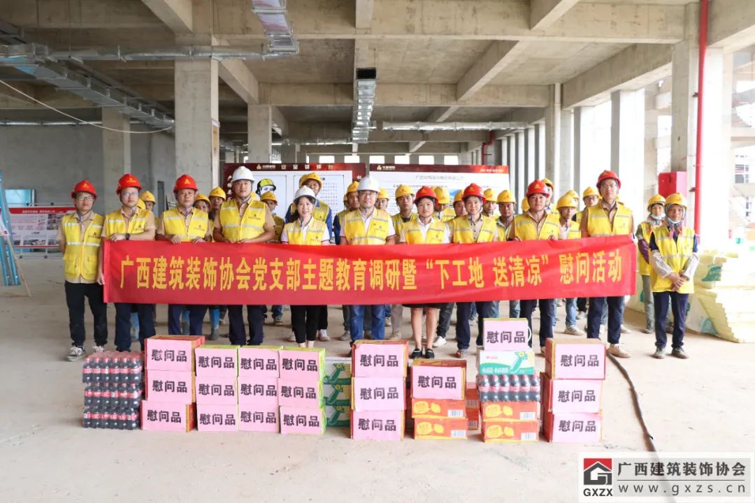 2023年6月8日,廣西建筑裝飾協(xié)會(huì)黨支部書記黃榆,組織支部黨員、入黨積極分子、秘書處工作人員一起前往華輝在建項(xiàng)目工地,與華輝黨支部共同開展“下工地 送清涼”慰問活動(dòng),向華輝一線勞動(dòng)者送去“清涼慰問品”。