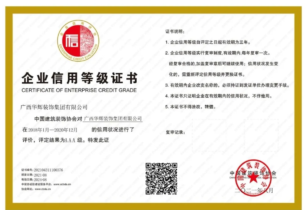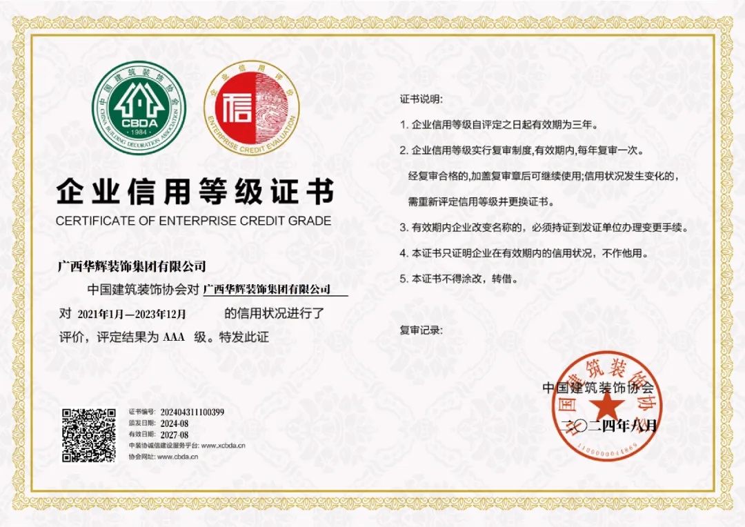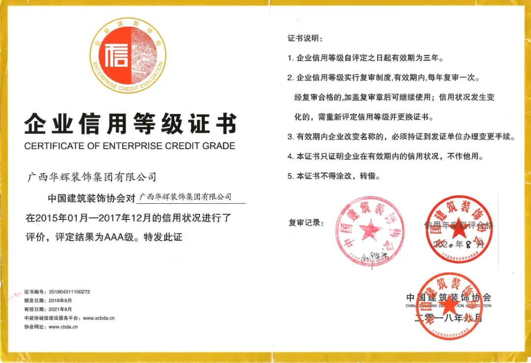 【華輝喜報(bào)】華輝連續(xù)6年獲評(píng)“中國(guó)建筑裝飾行業(yè)AAA級(jí)信用企業(yè)”