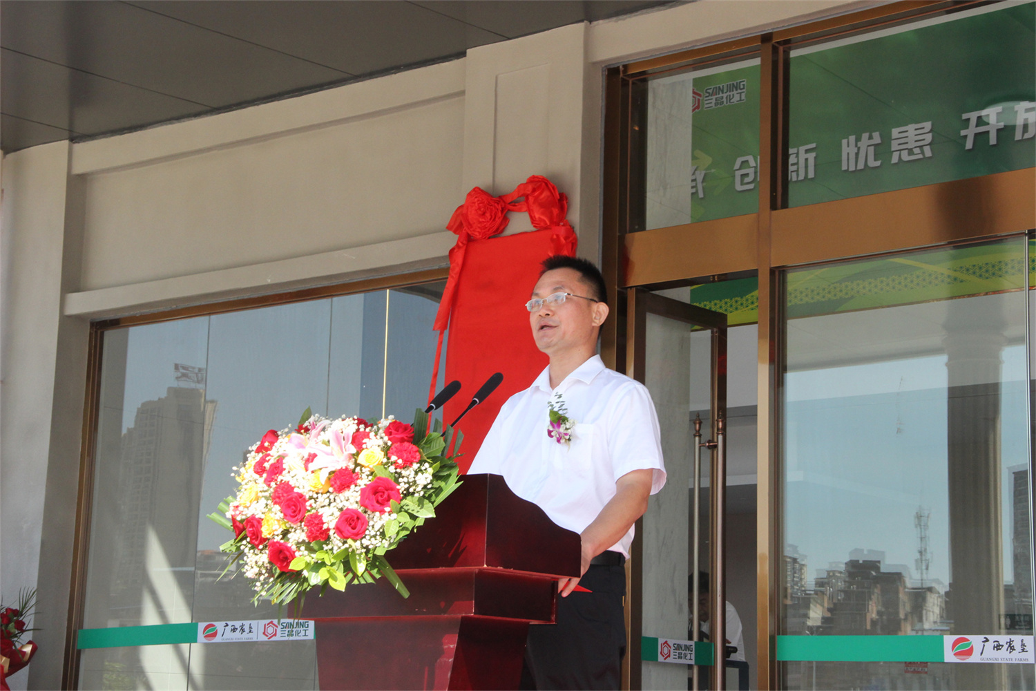 揭牌儀式上,廣西化工研究院公司黨委書記、董事長、院長賴開平致辭。化工院成立至今,始終堅(jiān)持創(chuàng)新賦能、科學(xué)發(fā)展,將科技創(chuàng)新作為促產(chǎn)興院的法寶,強(qiáng)科研,促轉(zhuǎn)化,興產(chǎn)業(yè),各項(xiàng)事業(yè)取得長足進(jìn)步,如今已構(gòu)建以“名優(yōu)產(chǎn)品為龍頭、多產(chǎn)業(yè)板塊齊頭并進(jìn)”的產(chǎn)業(yè)格局??萍紙@辦公區(qū)以及科技綜合樓的正式揭牌啟用,是化工院發(fā)展史上具有里程碑意義的一件大事,標(biāo)志著化工院整體創(chuàng)新能力實(shí)現(xiàn)了跨越式提升,企業(yè)發(fā)展邁出了更加堅(jiān)實(shí)的一步?;ぴ簩?jiān)持以習(xí)近平新時(shí)代中國特色社會主義思想為指導(dǎo),貫徹落實(shí)習(xí)近平總書記關(guān)于廣西工作論述的重要要求,深入學(xué)習(xí)貫徹黨的二十屆三中全會關(guān)于“深化國資國企改革”精神,貫徹落實(shí)廣西農(nóng)墾集團(tuán)的戰(zhàn)略部署,緊盯營收、利潤目標(biāo)任務(wù),立足產(chǎn)業(yè)拼效益,加快木薯多糖鐵新產(chǎn)品市場布局,有序加快產(chǎn)品研發(fā)引領(lǐng)產(chǎn)業(yè)發(fā)展,堅(jiān)決完成全年經(jīng)營目標(biāo)任務(wù)。