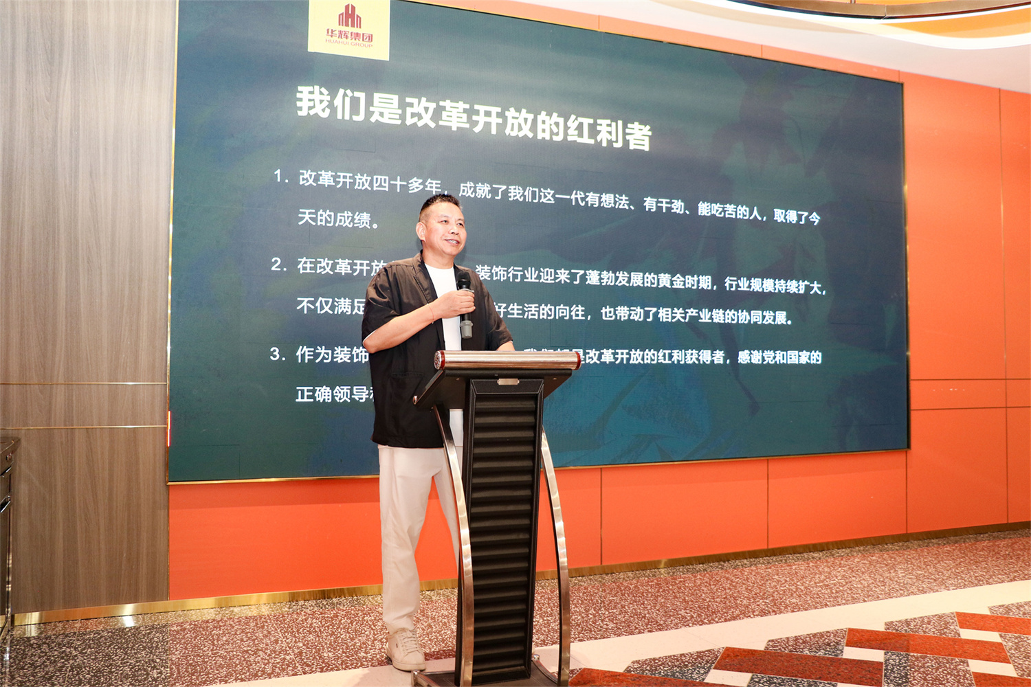 華輝裝飾集團下屬各板塊負責人:華輝裝飾集團經營管理中心經營總監(jiān)王小進、廣西大景綠色裝配科技有限公司總經理龐賢梅、廣西摩力智能科技有限公司總經理梁興輝分別就各自分管領域作分享交流。